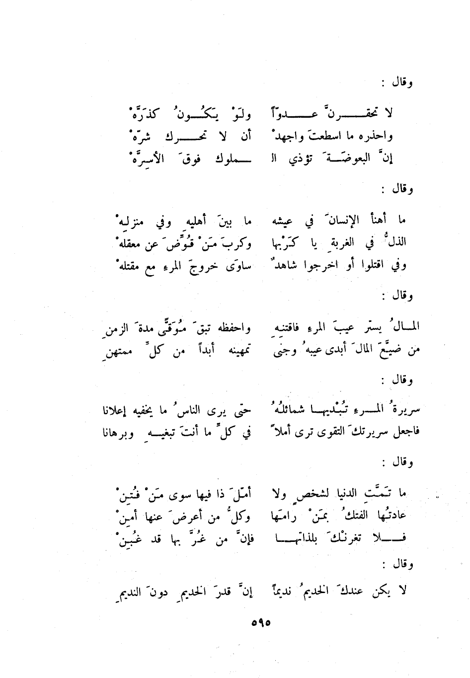 لا يكن عندك الخديم نديماً ... إن قدر الخديم دون النديم