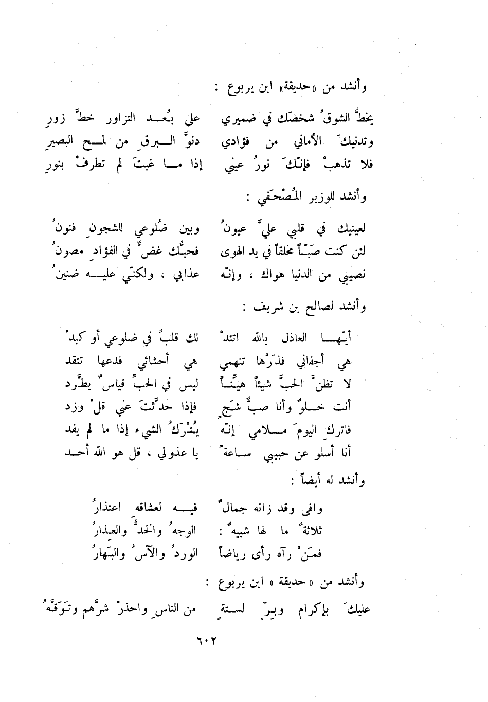 فمن رآه رأى رياضاً ... الورد والآس والبهار وأنشد من " حديقة " ابن يربوع: