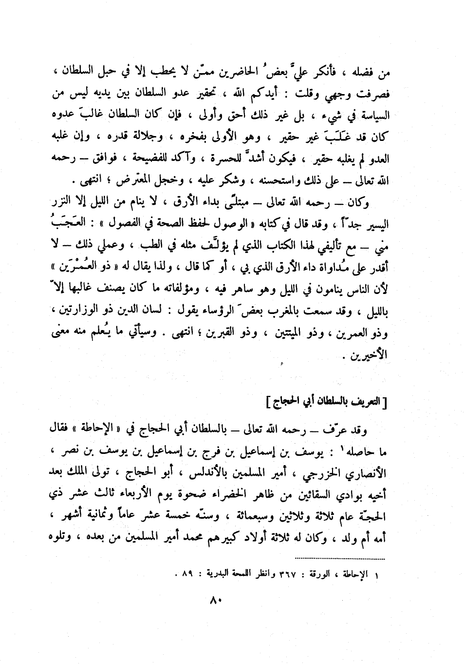 (1) الإحاطة، الورقة: 367 وانظر اللمحة البدرية: 89.