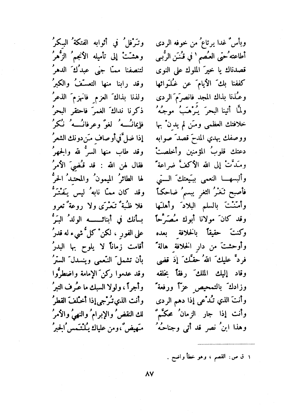 خلافتك العظمى ومن لم يدن بها ... فإيمانه لغو وعرفانه نكر