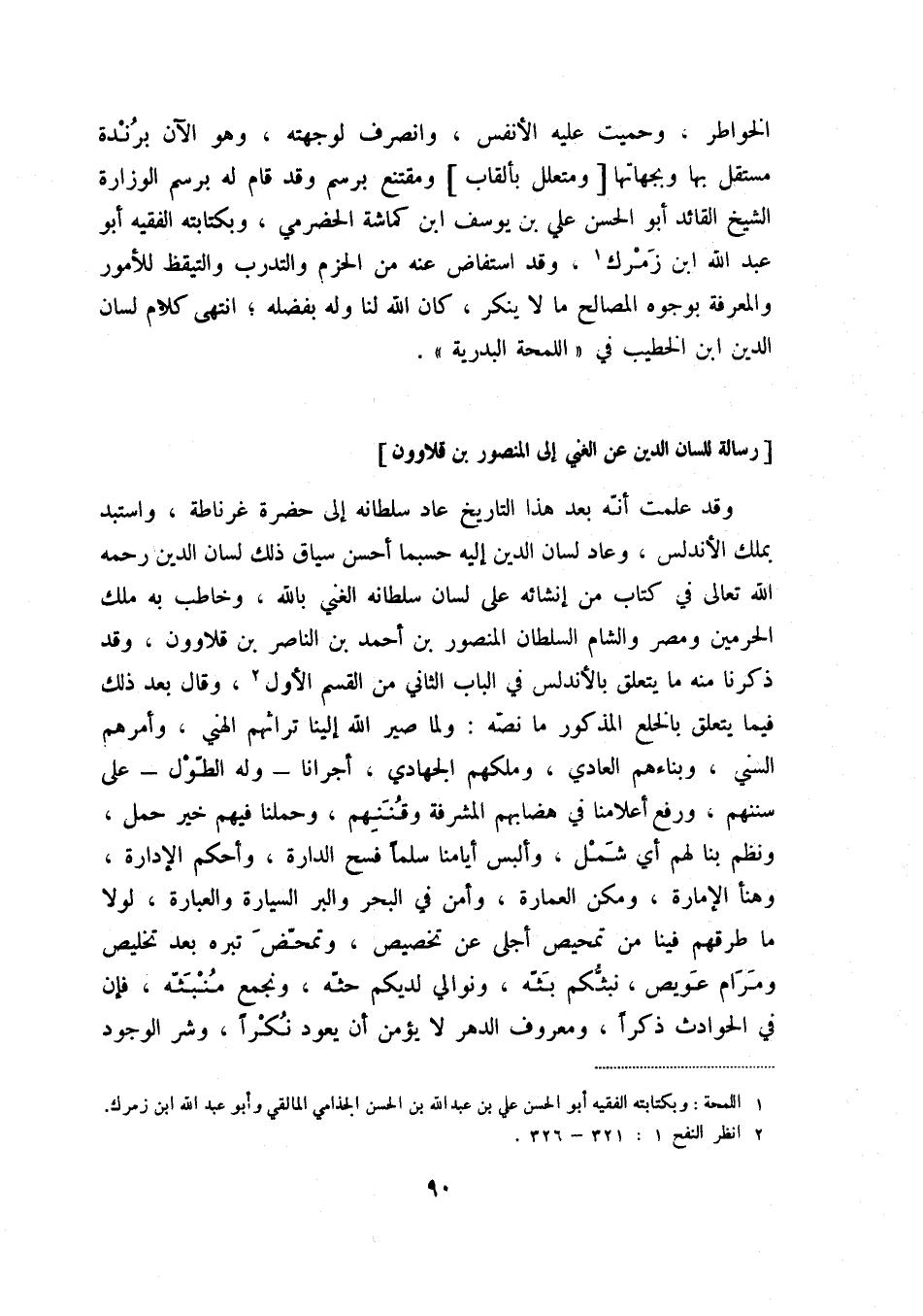 [رسالة للسان الدين عن الغني إلى المنصور بن قلاوون]