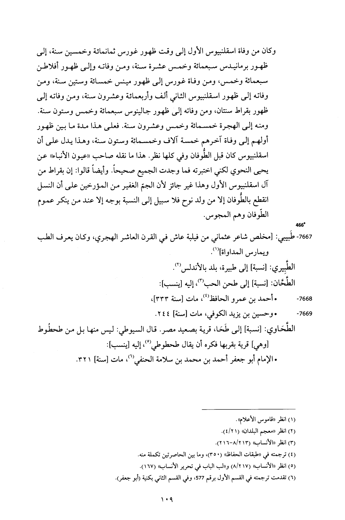 الطَّحَاوي: [نسبة] إلى طَحَا، قرية بصعيد مصر. قال السيوطي: ليس منها بل من طحطُوط [وهي] قرية بقربها فكره أن يقال طحطوطي (¬5)، إليه [ينسب]: