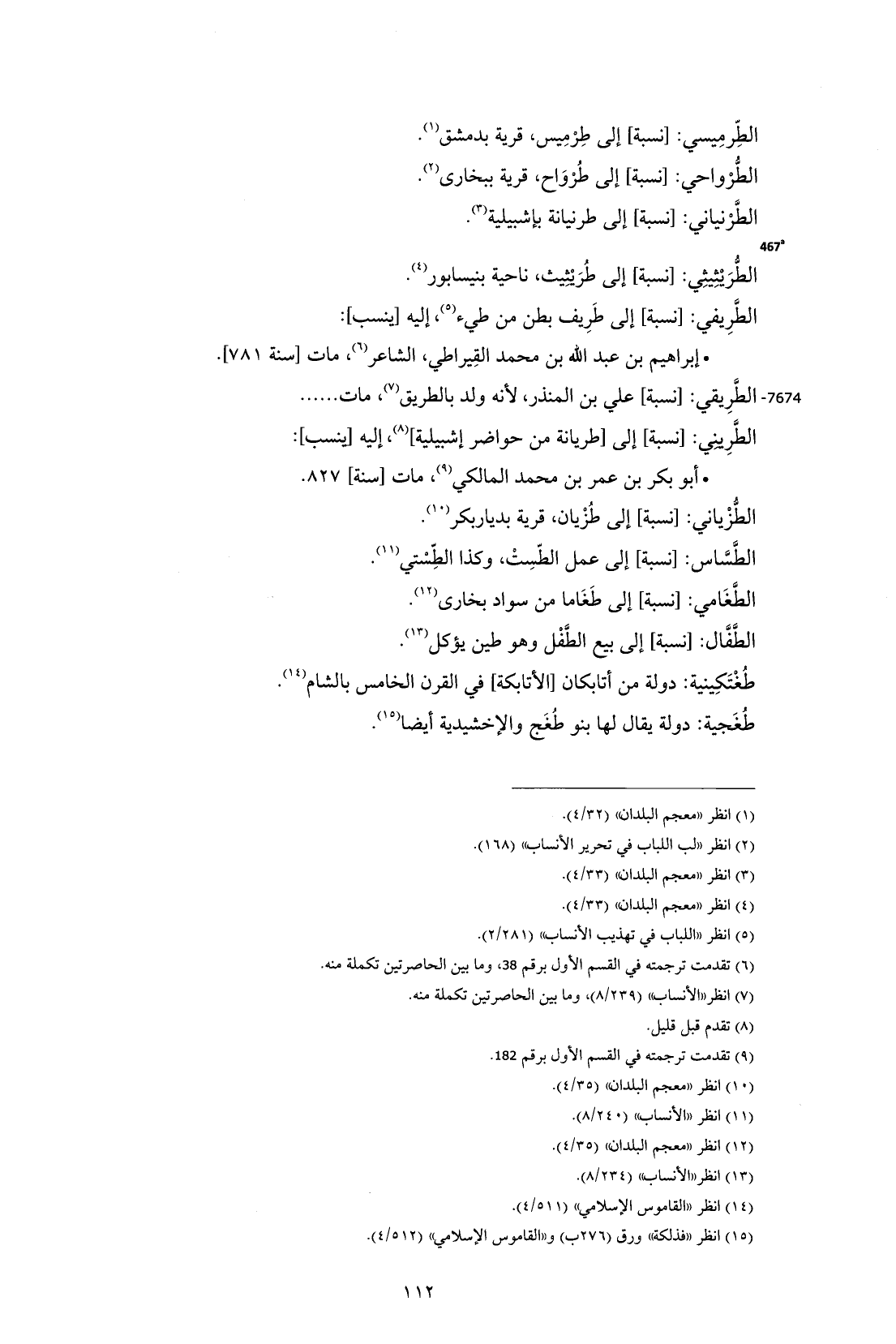 (¬7) انظر "الأنساب" (8/ 239)، وما بين الحاصرتين تكملة منه.