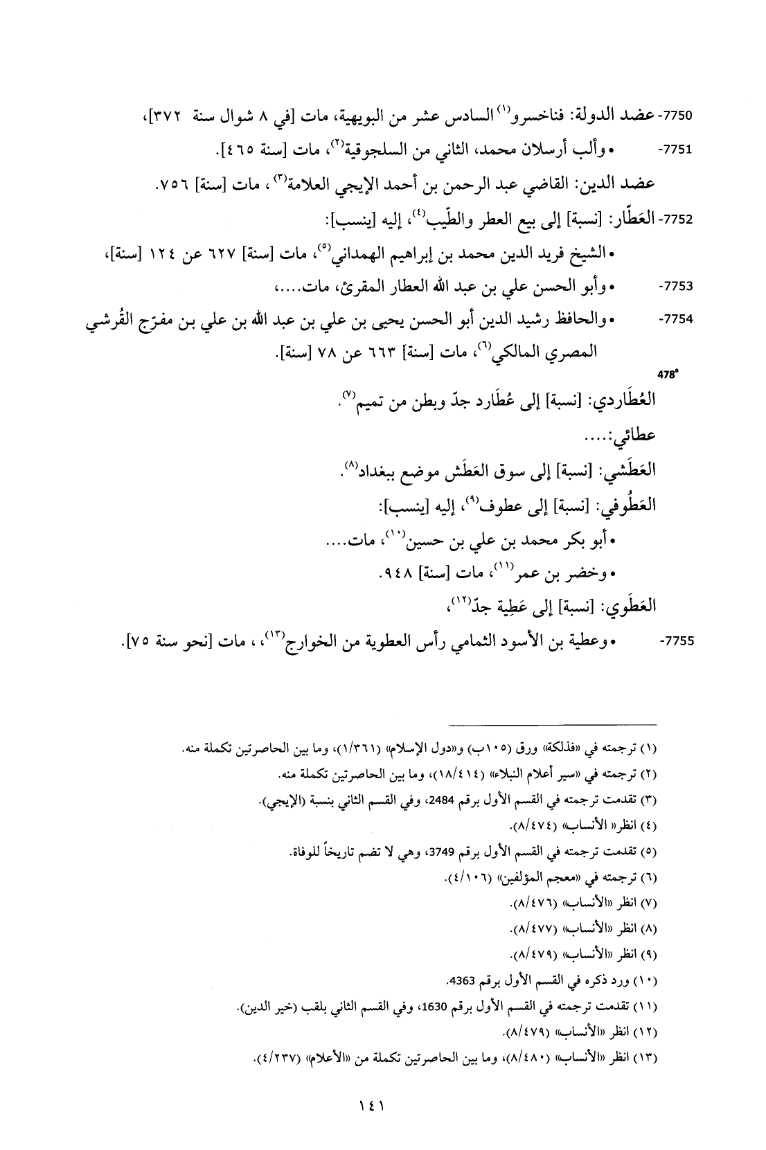 7752 - العَطّار: [نسبة] إلى بيع العطر والطّيب (¬4)، إليه [ينسب]: