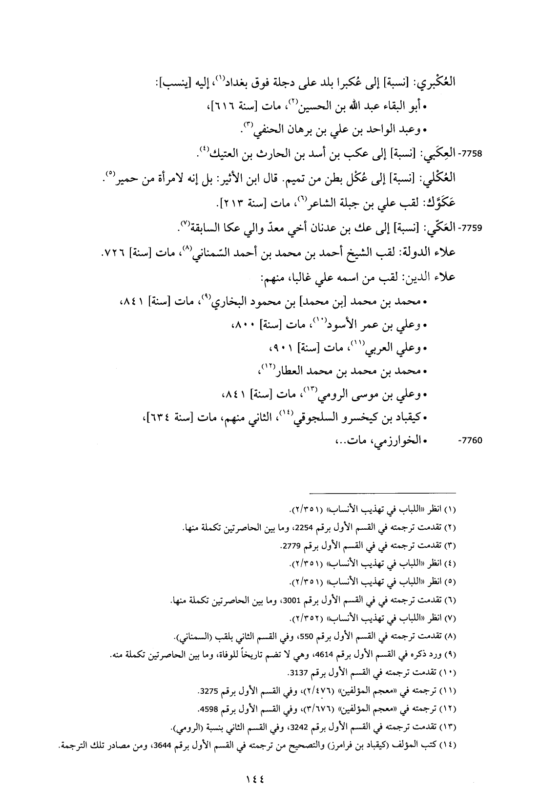 7758 - العِكَبي: [نسبة] إلى عكب بن أسد بن الحارث بن العتيك (¬4).