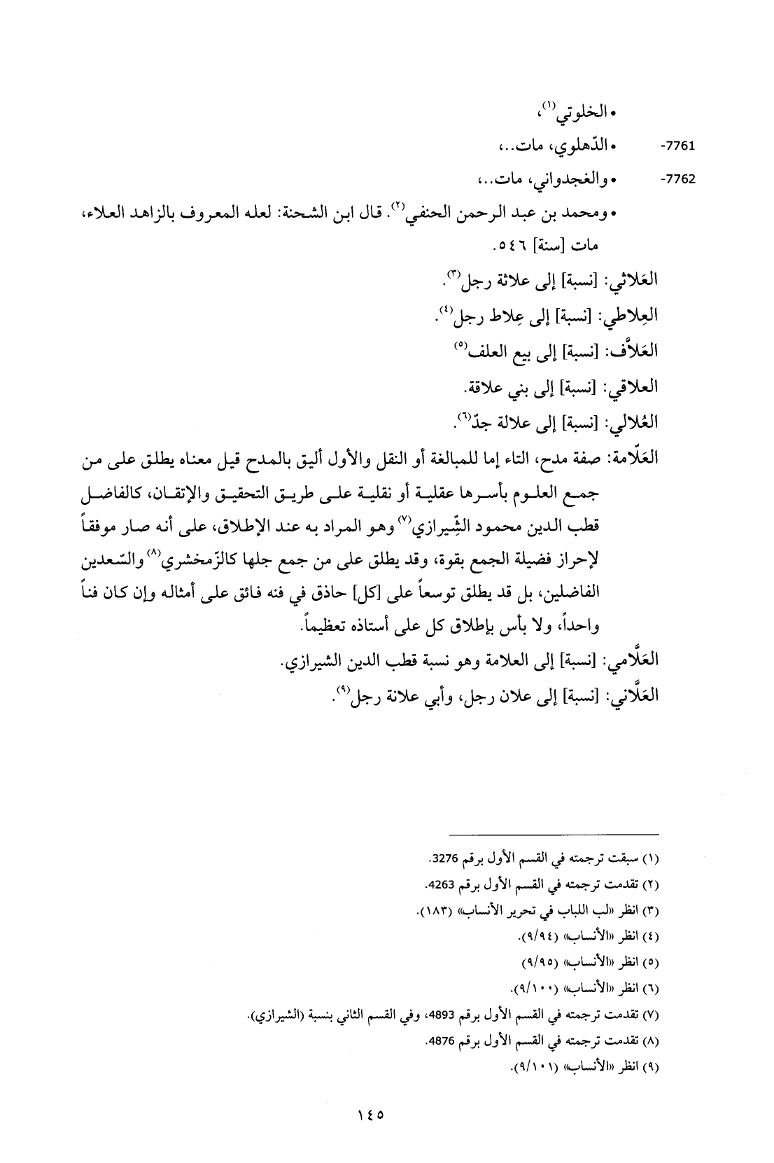 العَلَّامي: [نسبة] إلى العلامة وهو نسبة قطب الدين الشيرازي.