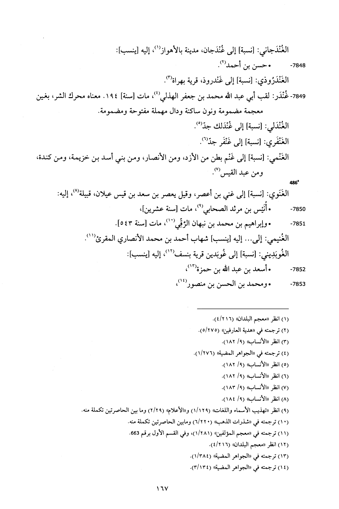 الغَنْمي: [نسبة] إلى غَنْم بطن من الأزد، ومن الأنصار، ومن بني أسد بن خزيمة، ومن كندة، ومن عبد القيس (¬7).