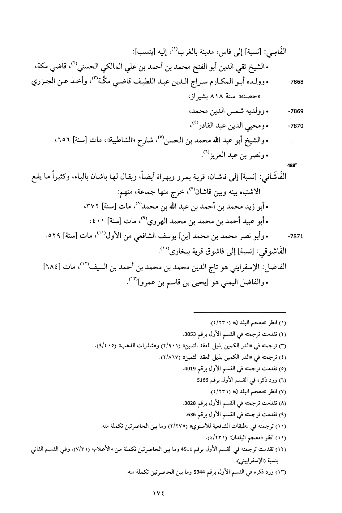 7871 - • وأبو نصر محمد بن محمد [بن] يوسف الشافعي من الأول (¬10)، مات [سنة] 529.