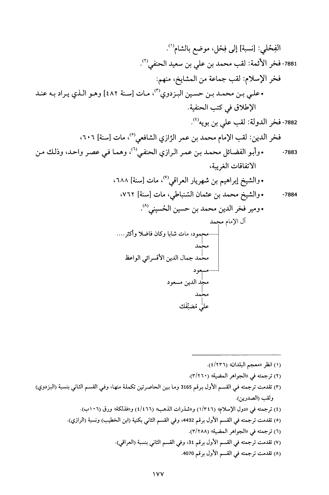 7881 - فخر الأئمة: لقب محمد بن علي بن سعيد الحنفي (¬2).