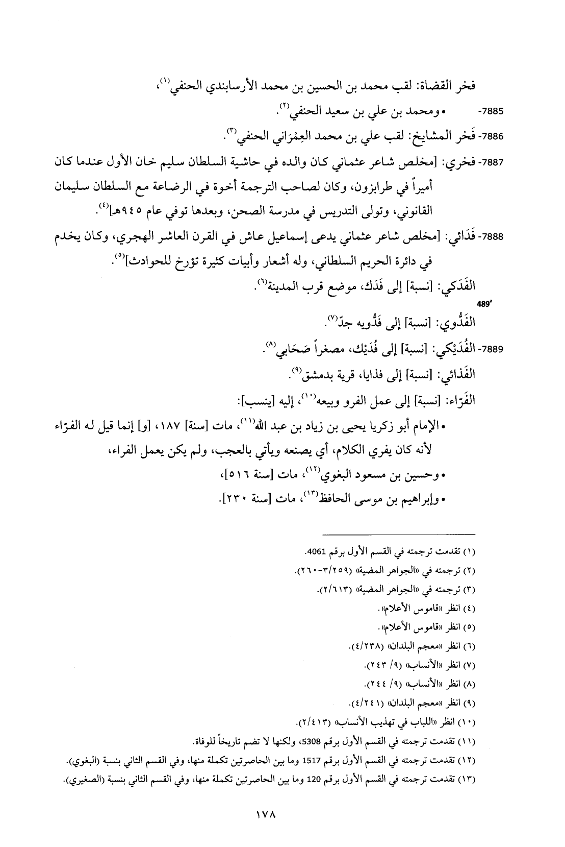 7889 - الفُدَيْكي: [نسبة] إلى فُدَيْك، مصغرًا صَحَابي (¬8).