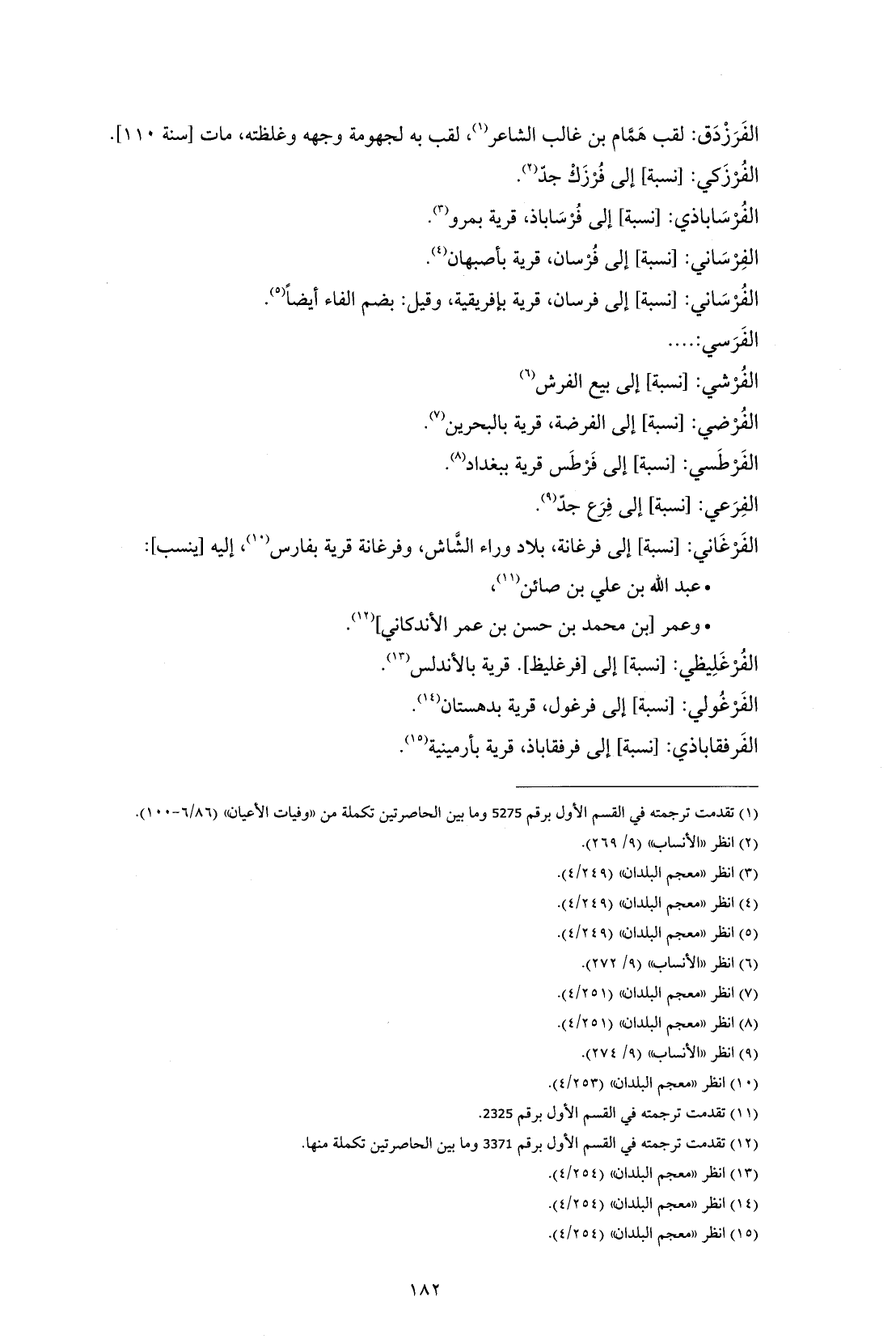الفِرْسَاني: [نسبة] إلى فُرْسان، قرية بأصبهان (¬4).