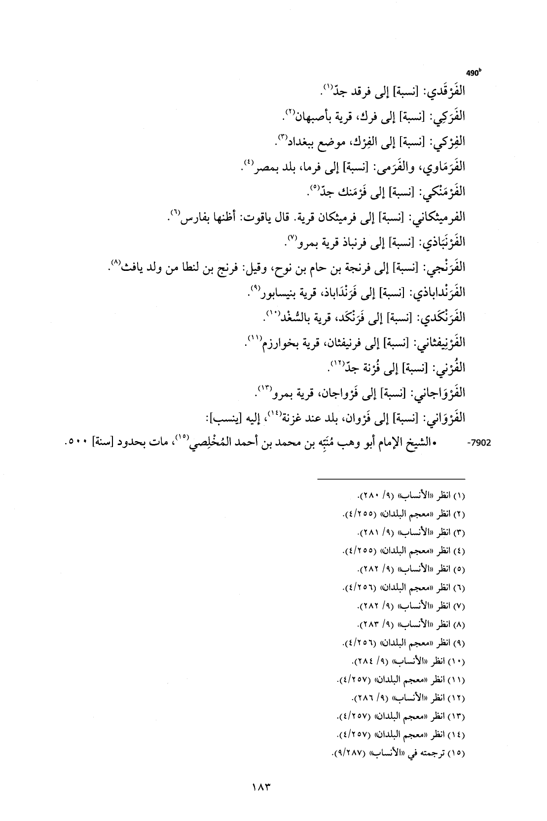 7902 - • الشيخ الإمام أبو وهب مُنَبِّه بن محمد بن أحمد المُخْلِصي (¬15)، مات بحدود [سنة] 500.