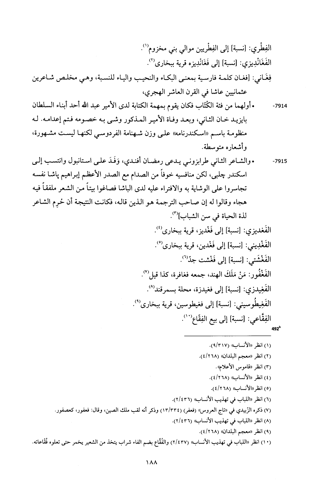 الفَغَانْدِيزي: [نسبة] فَغَانْدِيزه قرية ببخارى (¬2).