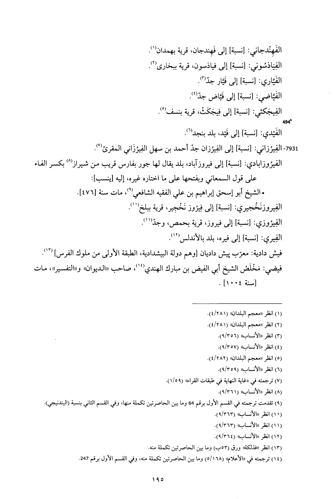7931 - الفِيرُزاني: [نسبة] إلى الفِيرُزان جدّ أحمد بن سهل الفِيرُزَاني المقرئ (¬7).