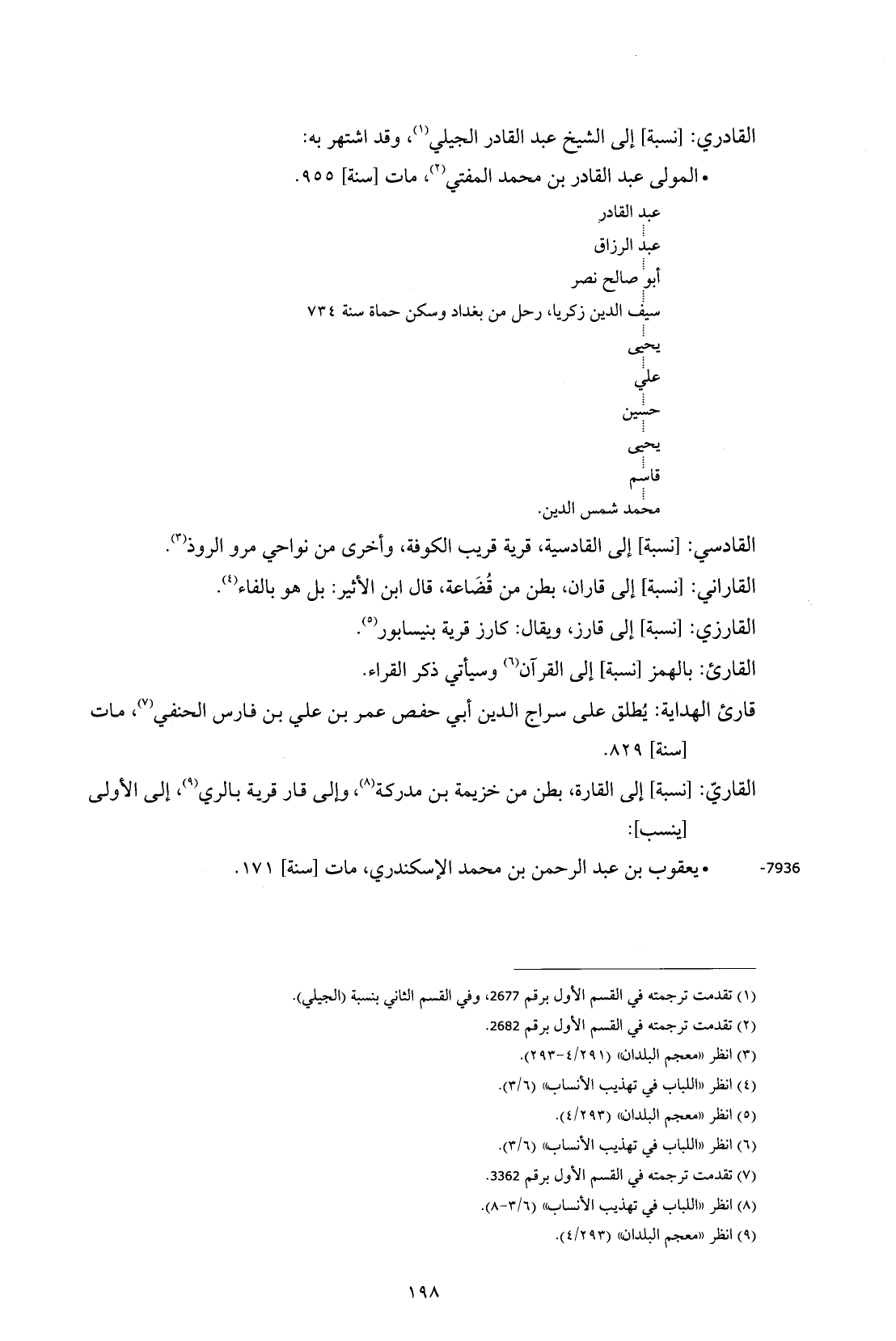 القادري: [نسبة] إلى الشيخ عبد القادر الجيلي (¬1)، وقد اشتهر به: