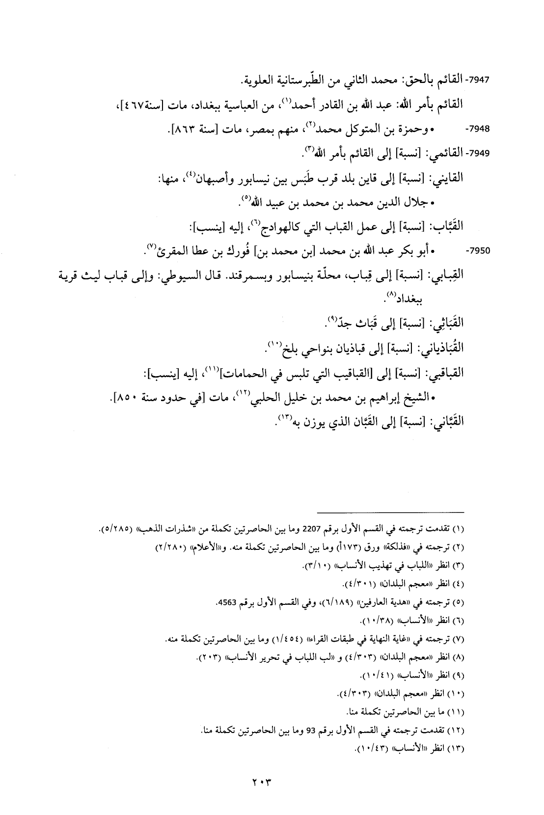 7949 - القائمي: [نسبة] إلى القائم بأمر الله (¬3).