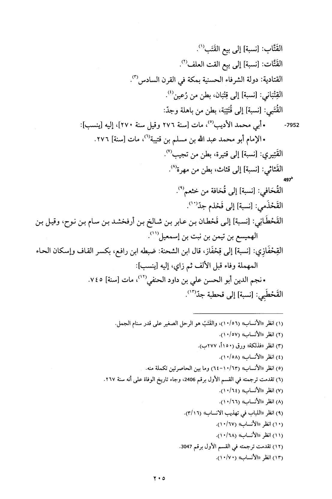 (¬1) انظر "الأنساب" (10/ 56)، والقَتَبُ هو الرحل الصغير على قدر سنام الجمل.