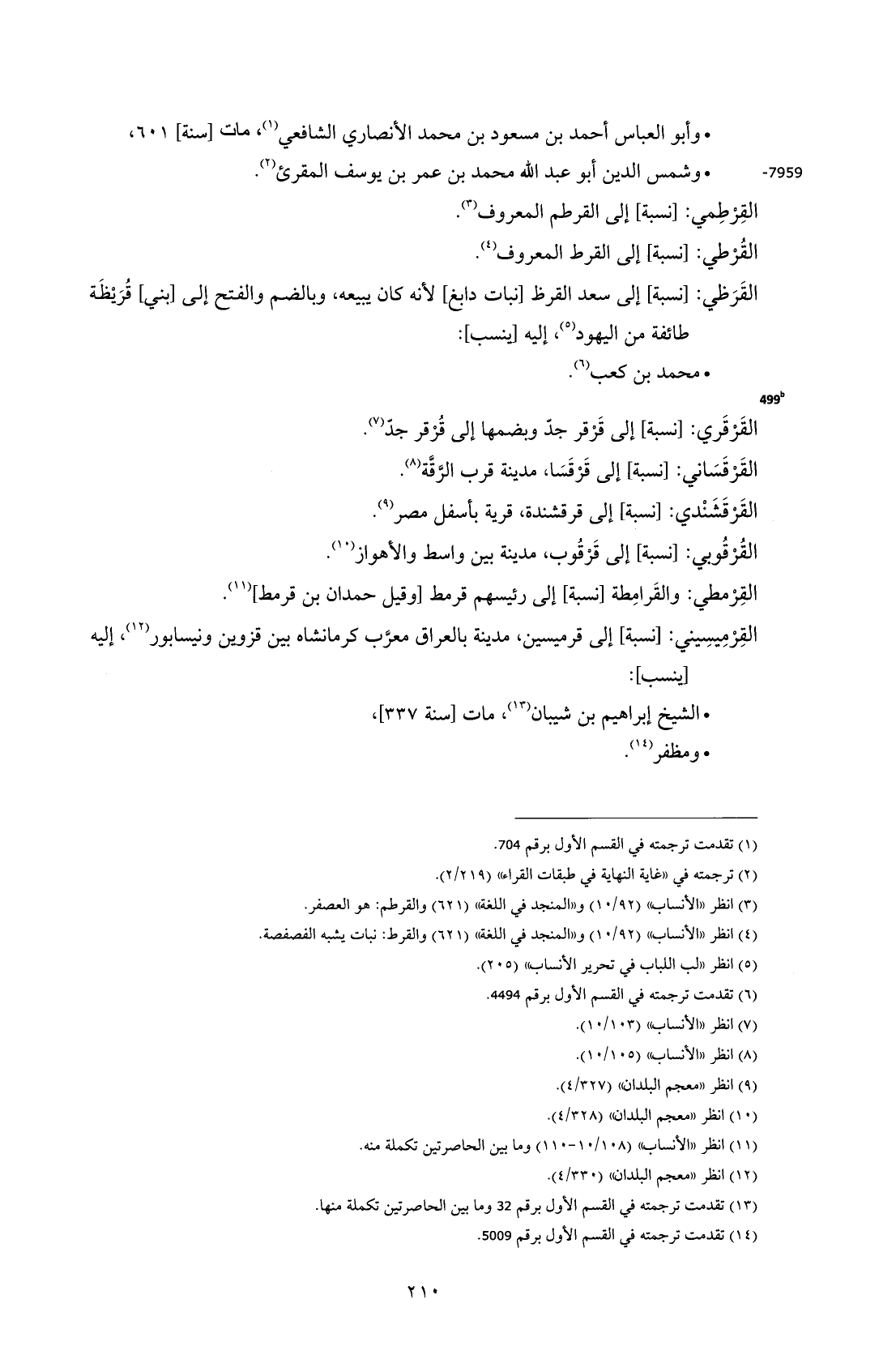 (¬4) انظر "الأنساب" (10/ 92) و"المنجد في اللغة" (621) والقرط: نبات يشبه الفصفصة.