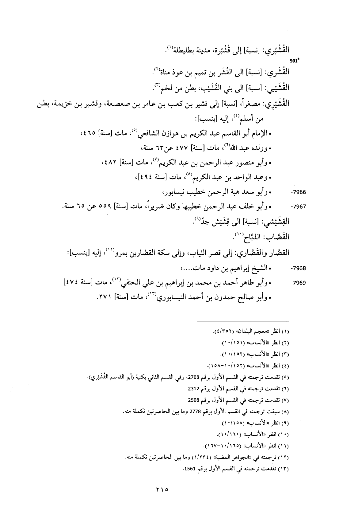 (¬5) تقدمت ترجمته في القسم الأول برقم 2708، وفي القسم الثاني بكنية (أبو القاسم القُشَيْري).