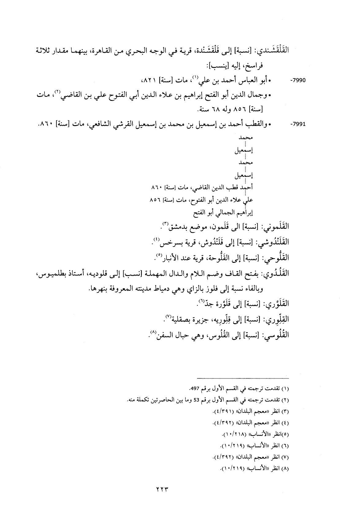 7991 - • والقطب أحمد بن إسمعيل بن محمد بن إسمعيل القرشي الشافعي، مات [سنة] 860.