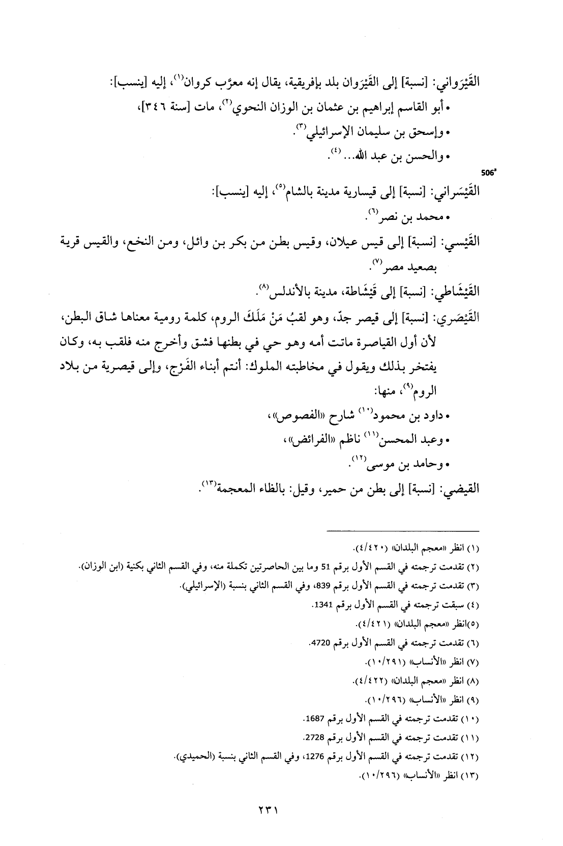 القَيْسَراني: [نسبة] إلى قيسارية مدينة بالشام (¬5)، إليه [ينسب]: