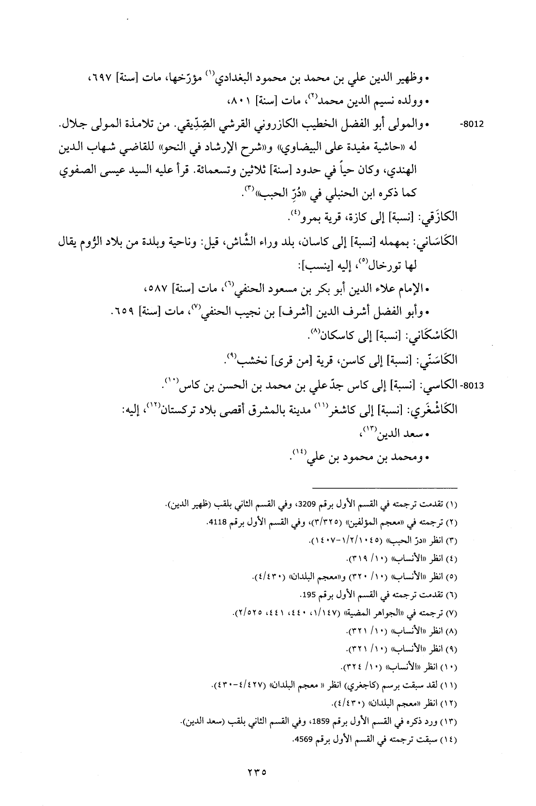 8013 - الكاسي: [نسبة] إلى كاس جدّ علي بن محمد بن الحسن بن كاس (¬10).