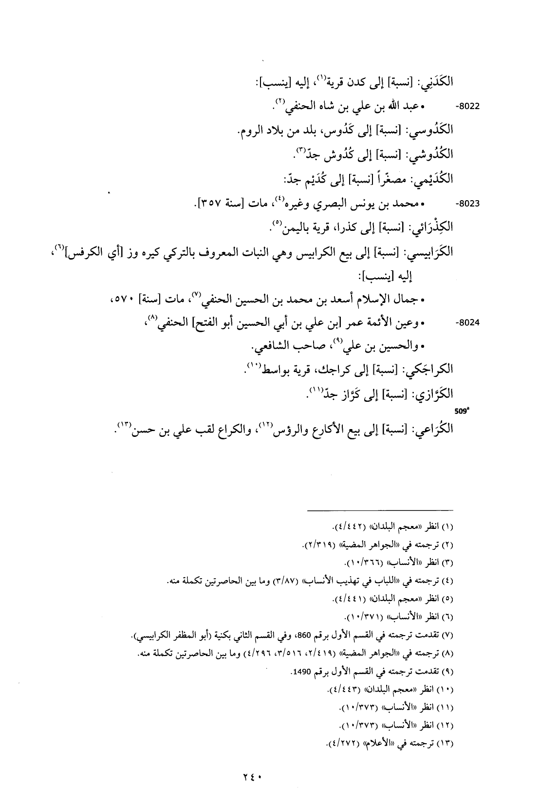 (¬7) تقدمت ترجمته في القسم الأول برقم 860، وفي القسم الثاني بكنية (أبو المظفر الكرابيسي).