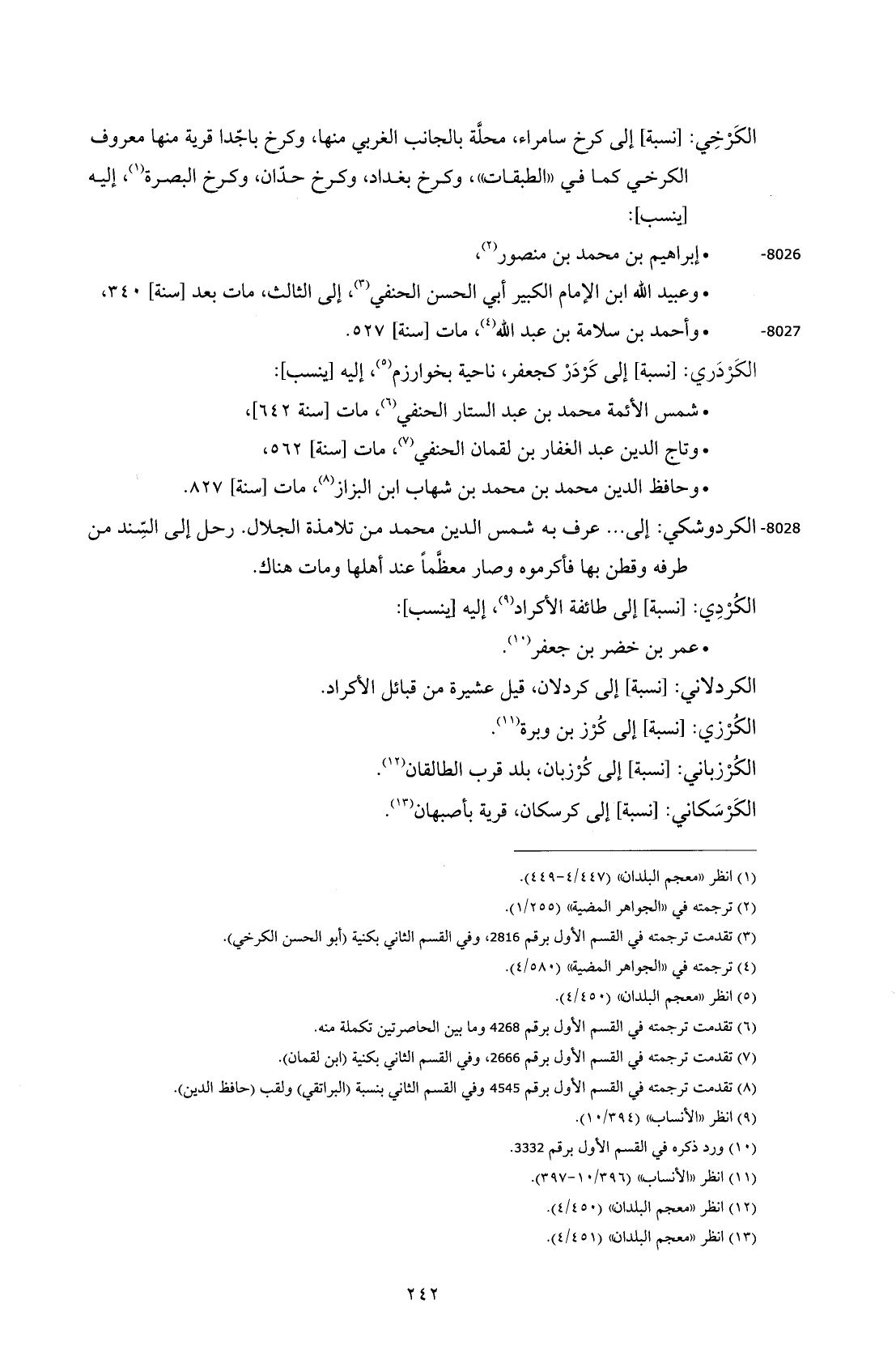 8028 - الكردوشكي: إلى ... عرف به شمس الدين محمد من تلامذة الجلال. رحل إلى السِّند من طرفه وقطن بها فأكرموه وصار معظَّمًا عند أهلها ومات هناك.