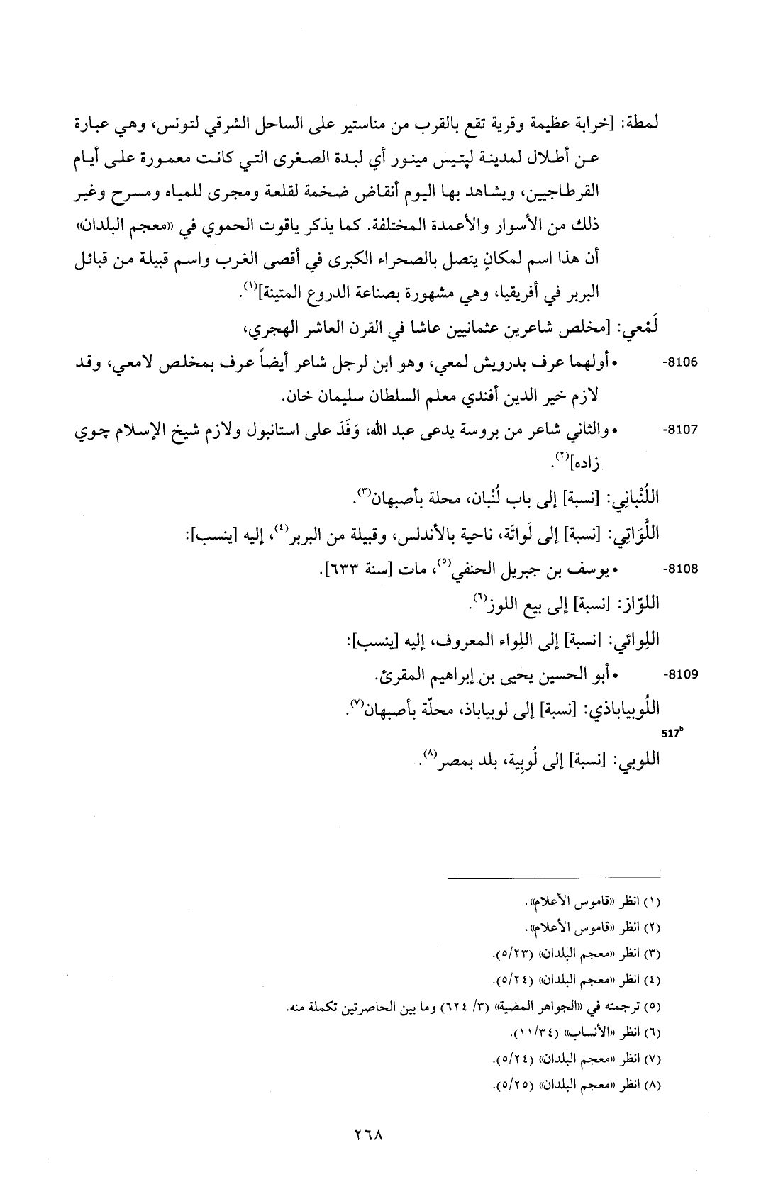 8106 - • أولهما عرف بدرويش لمعي، وهو ابن لرجل شاعر أيضاً عرف بمخلص لامعي، وقد لازم خير الدين أفندي معلم السلطان سليمان خان.