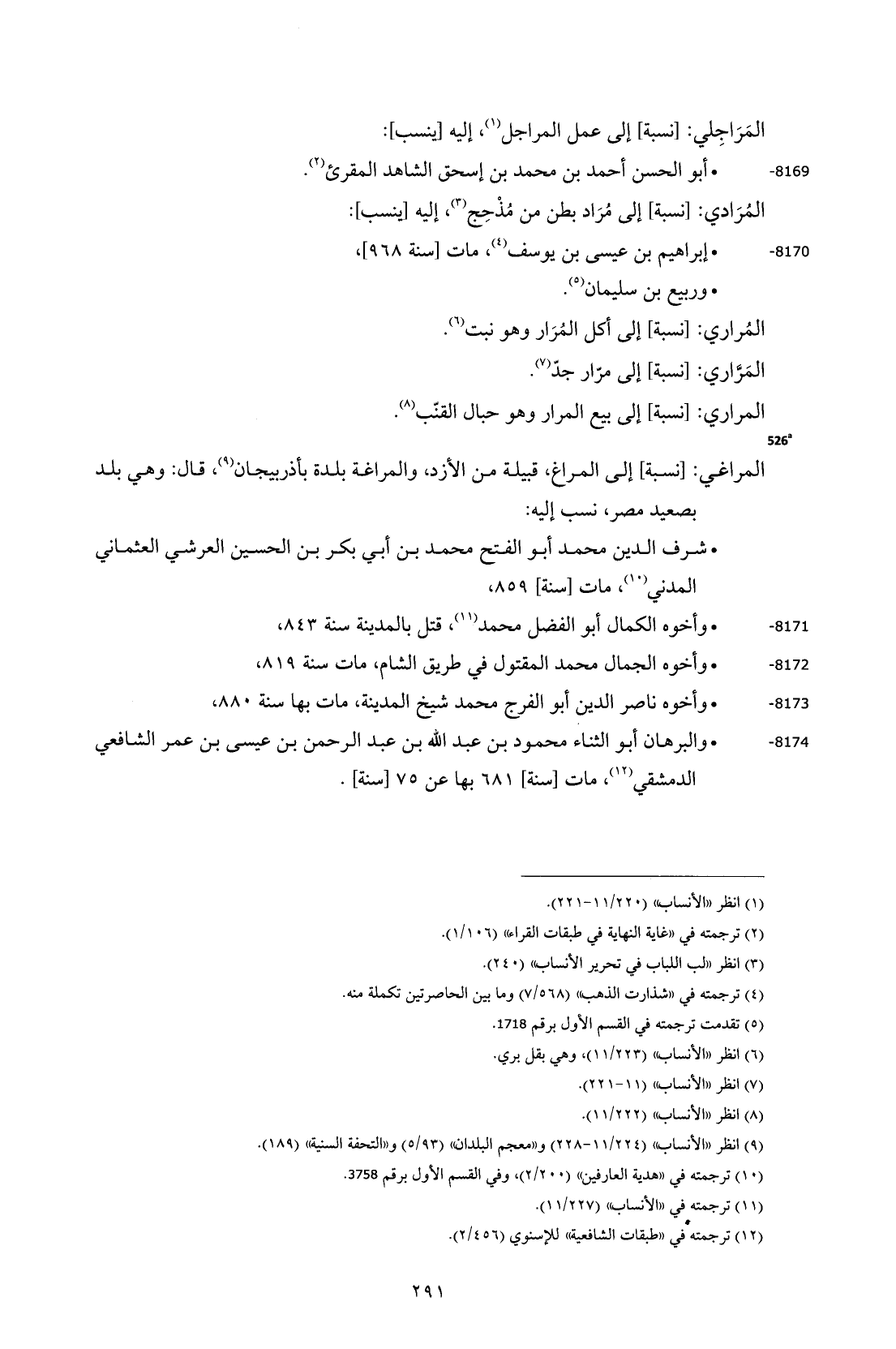 (¬11) ترجمته في "الأنساب" (11/ 227).