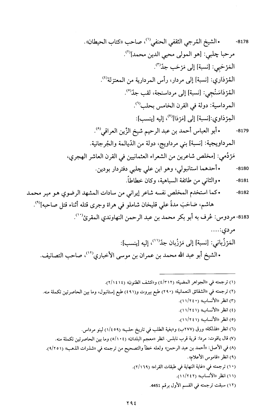 8178 - • الشيخ المُرجي الثقفي الحنفي (¬1)، صاحب "كتاب الحيطان".