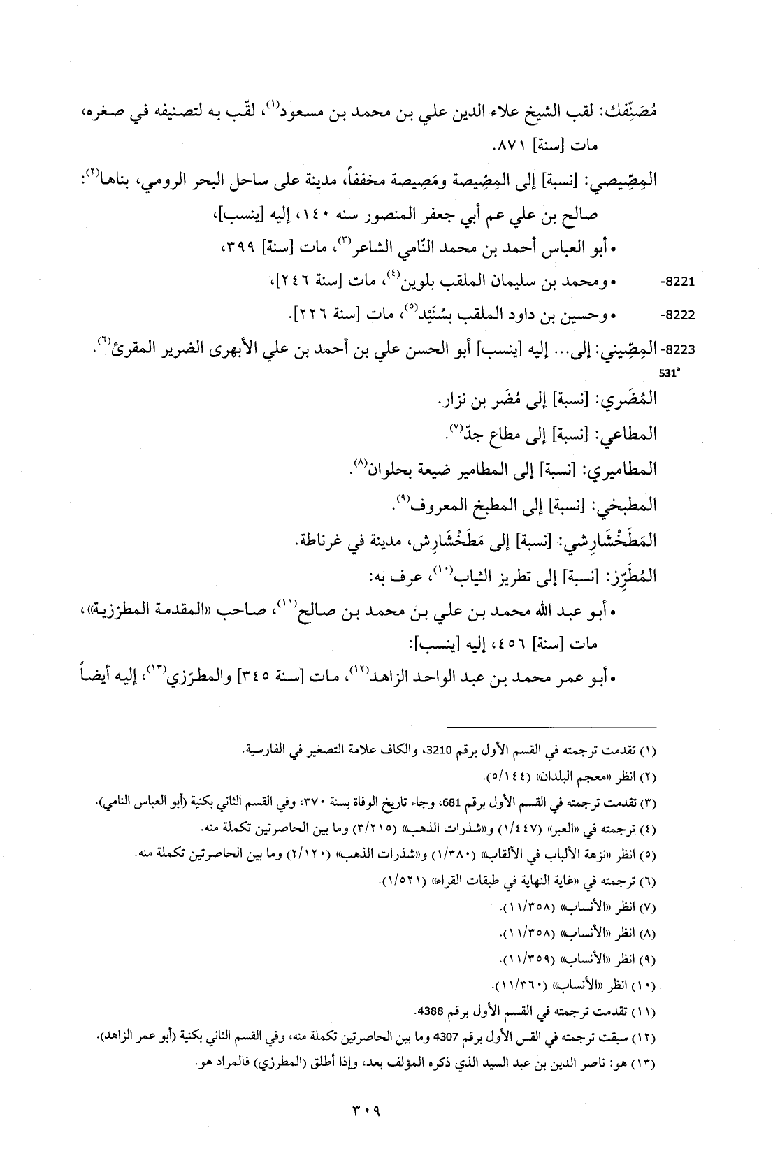 8223 - المِصِّيني: إلى ... إليه [ينسب] أبو الحسن علي بن أحمد بن علي الأبهرى الضَّرير المقرئ (¬6).
