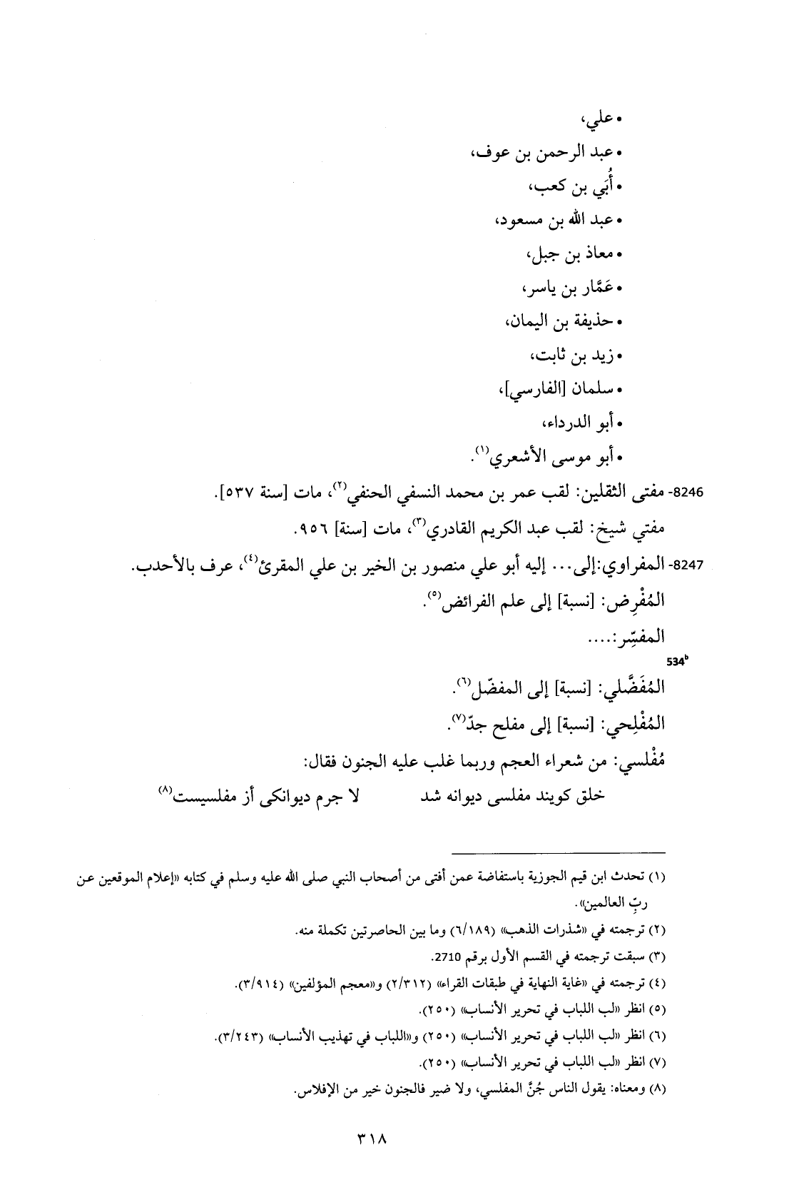 8246 - مفتى الثقلين: لقب عمر بن محمد النسفي الحنفي (¬2)، مات [سنة 537].