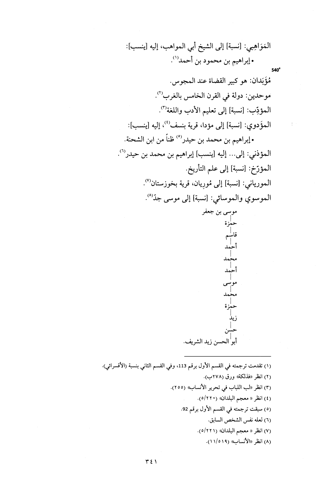 المؤذني: إلى ... إليه [ينسب] إبراهيم بن محمد بن حيدر (¬6)