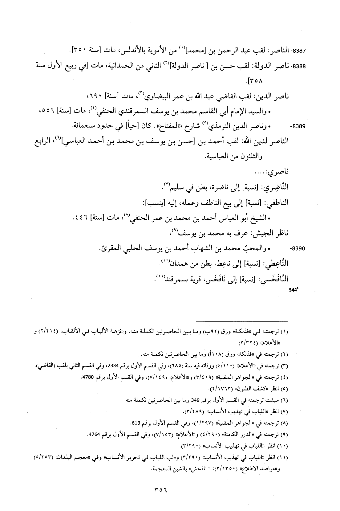 8387 - الناصر: لقب عبد الرحمن بن [محمد] (¬1) من الأموية بالأندلس، مات [سنة 350].