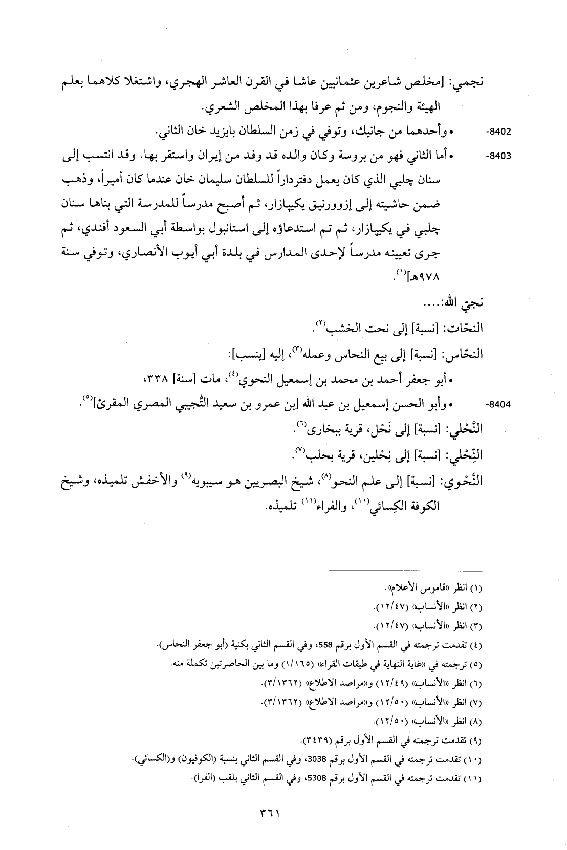 (¬10) تقدمت ترجمته في القسم الأول برقم 3038، وفي القسم الثاني بنسبة (الكوفيون) و (الكسائي).