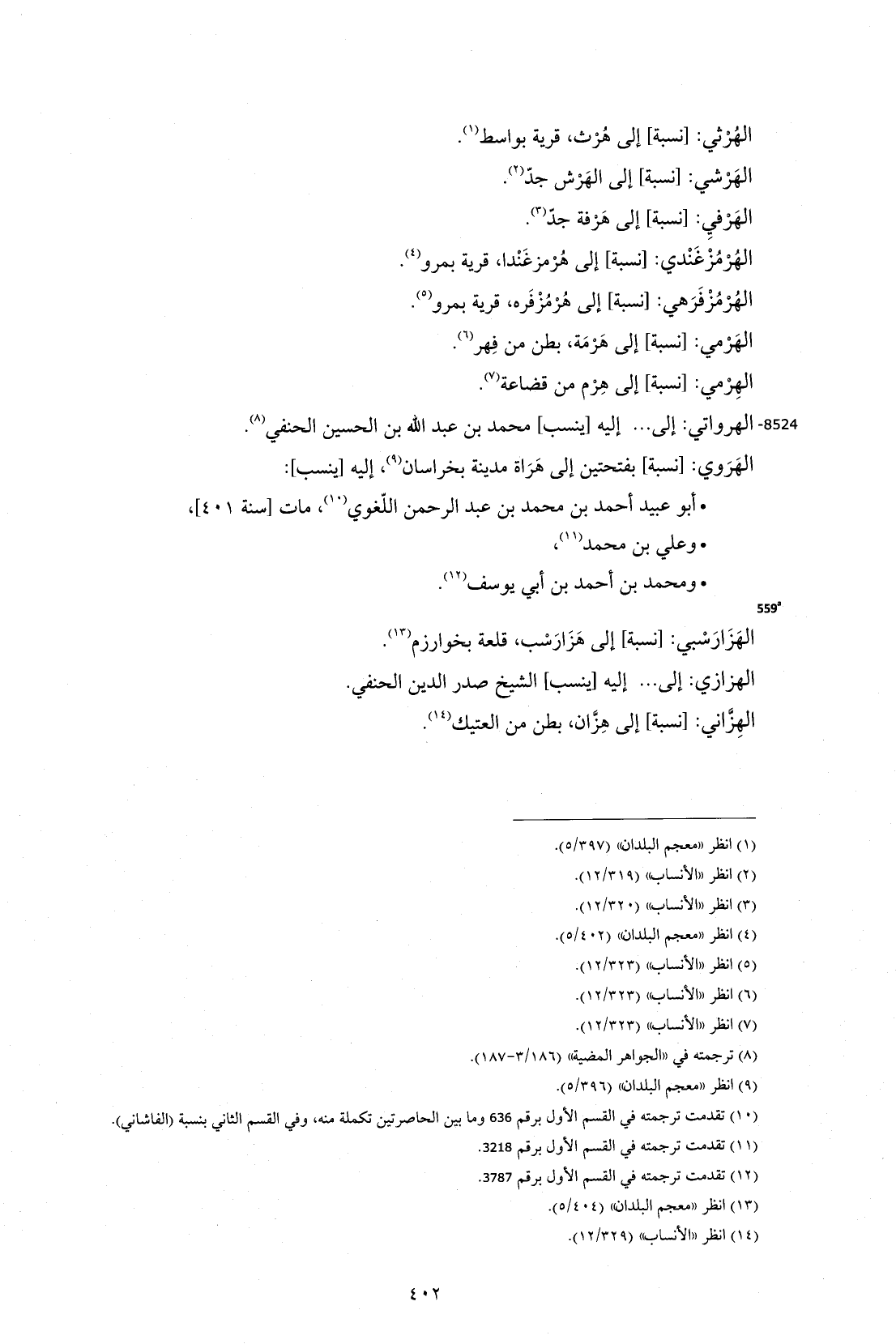 8524 - الهرواتي: إلى ... إليه [ينسب] محمد بن عبد الله بن الحسين الحنفي (¬8).