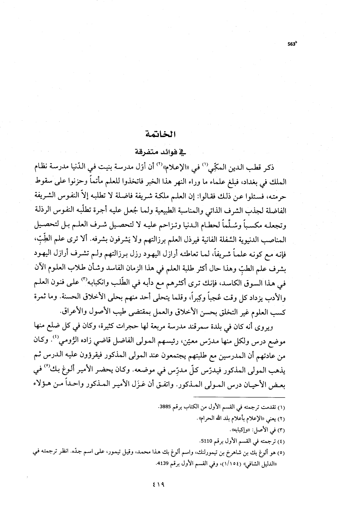 (¬5) هو ألوغ بك بن شاهرخ بن تيمورلنك، واسم ألوغ بك هذا محمد، وقيل تيمور، على اسم جدّه. انظر ترجمته في "الدليل الشافي" (1/ 154)، وفي القسم الأول برقم 4139.