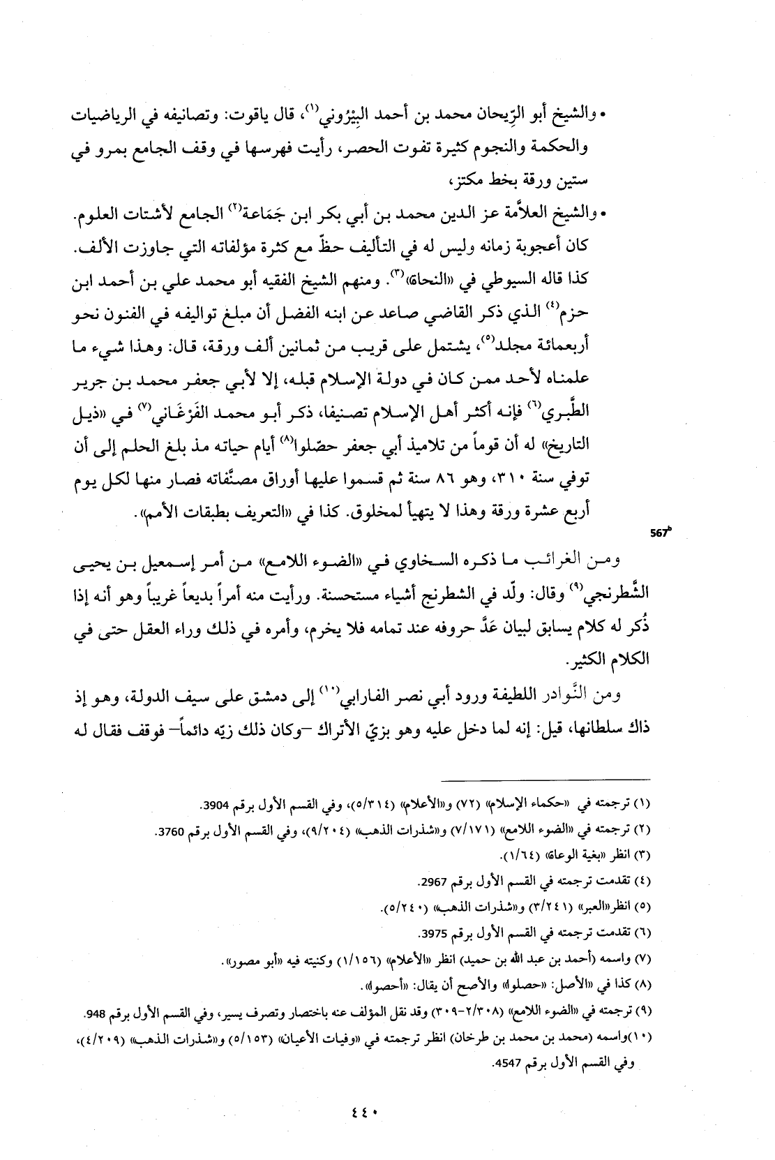 (¬10) واسمه (محمد بن محمد بن طرخان) انظر ترجمته في "وفيات الأعيان" (5/ 153) و"شذرات الذهب" (4/ 209)، وفي القسم الأول برقم 4547.