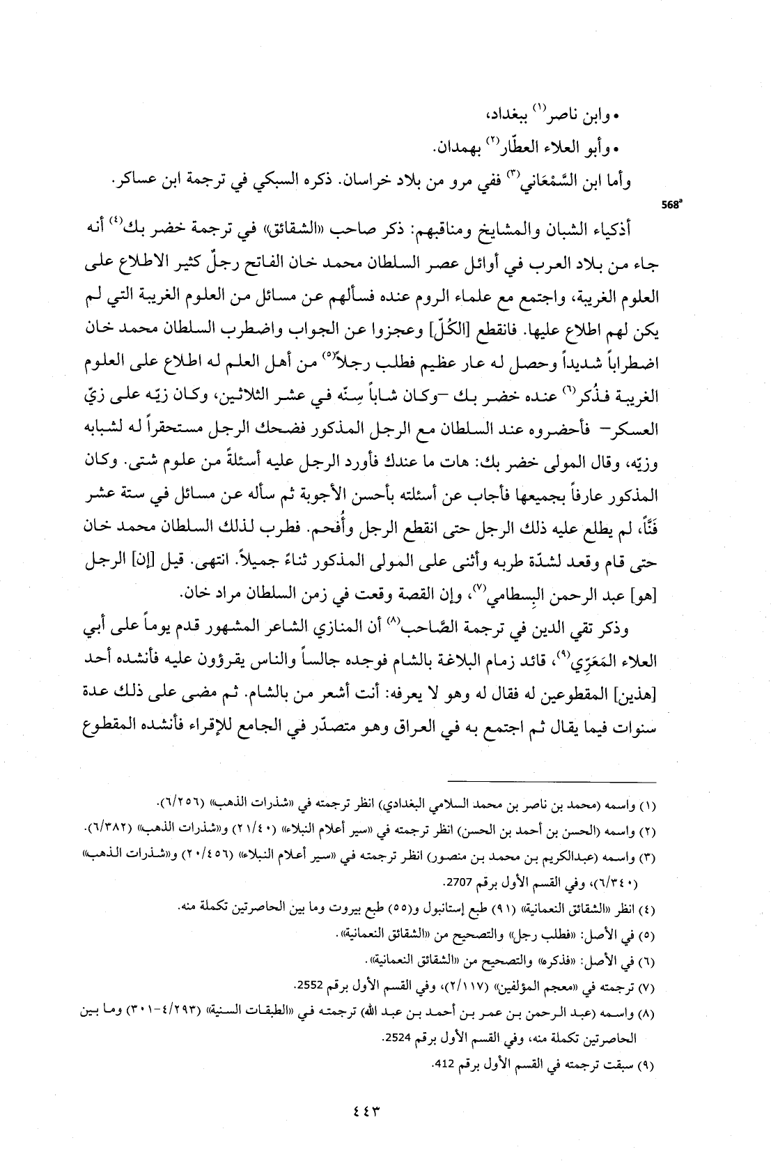 (¬6) في الأصل: "فذكره" والتصحيح من "الشقائق النعمانية".