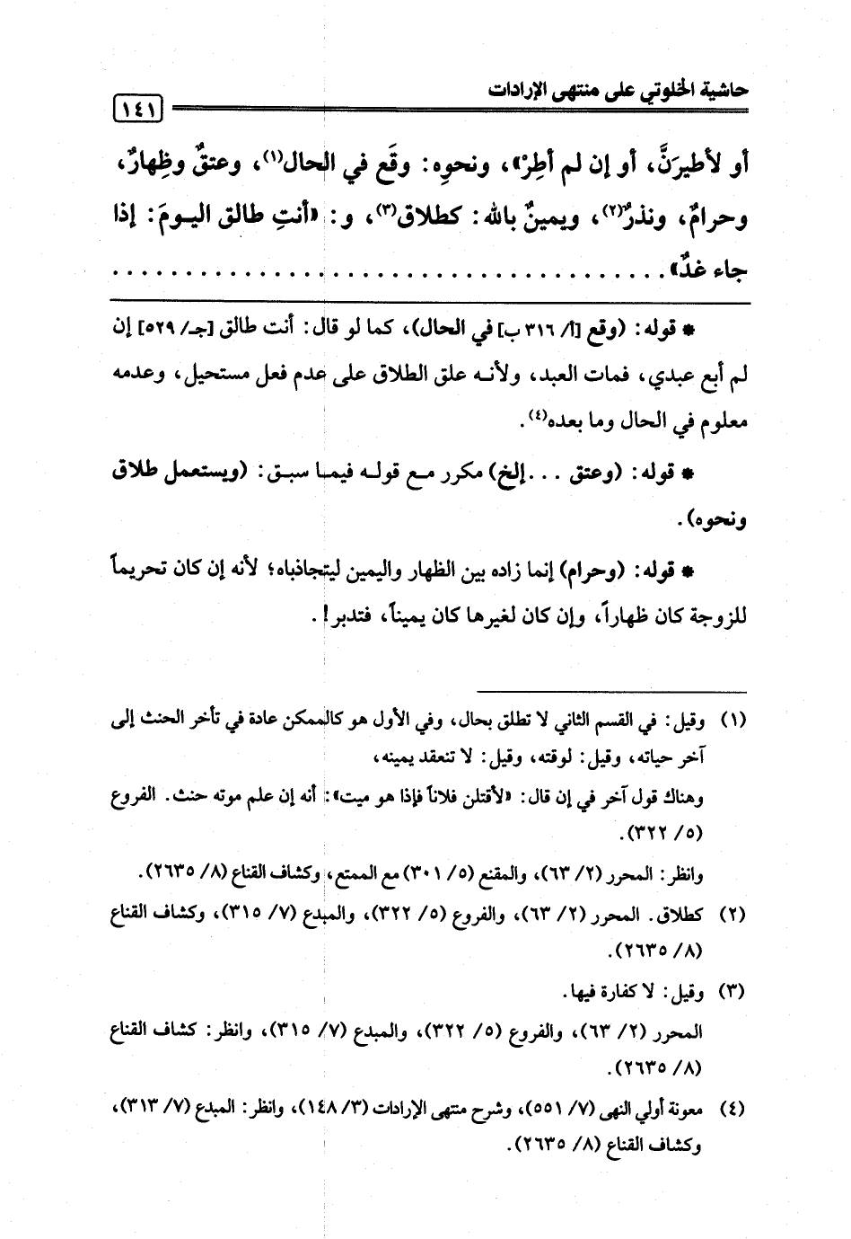 (¬4) معونة أولي النهي (7/ 551)، وشرح منتهي الإرادات (3/ 148)، وانظر: المبدع (7/ 313)، وكشاف القناع (8/ 2635).