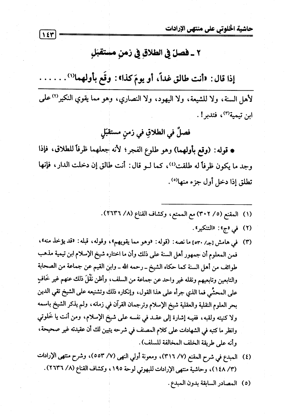 (¬4) المبدع في شرح المقنع (7/ 316)، ومعونة أولي النهي (7/ 553)، وشرح منتهى الإرادات (3/ 148)، وحاشية منتهى الإرادات للبهوتي لوحة 195، وكشاف القناع (8/ 2636).