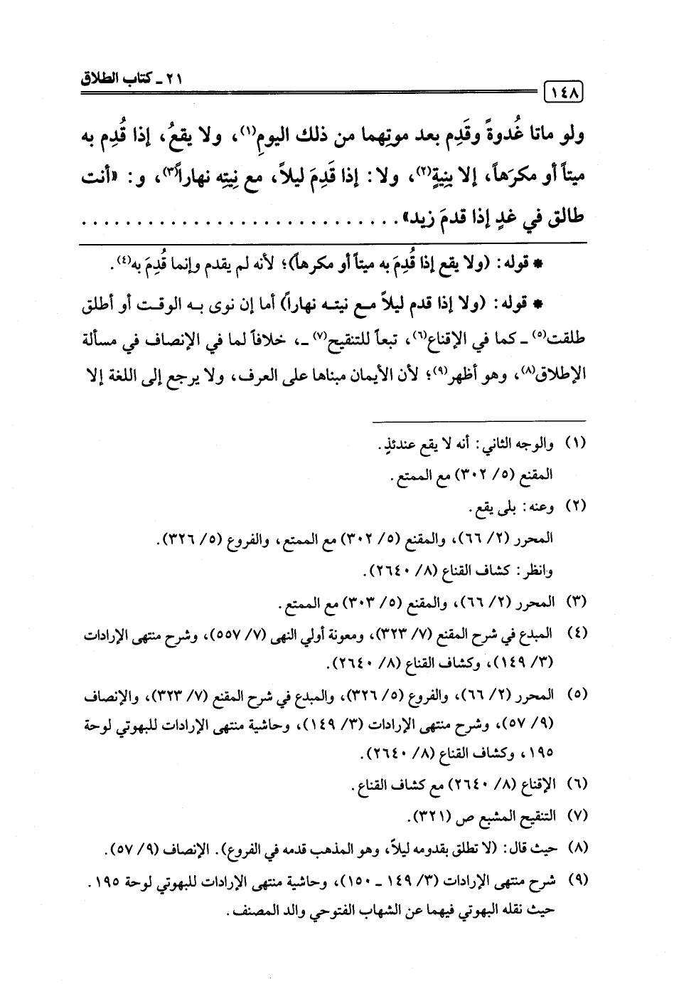 (¬9) شرح منتهى الإرادات (3/ 149 - 150)، وحاشية منتهى الإرادات للبهوتي لوحة 195.