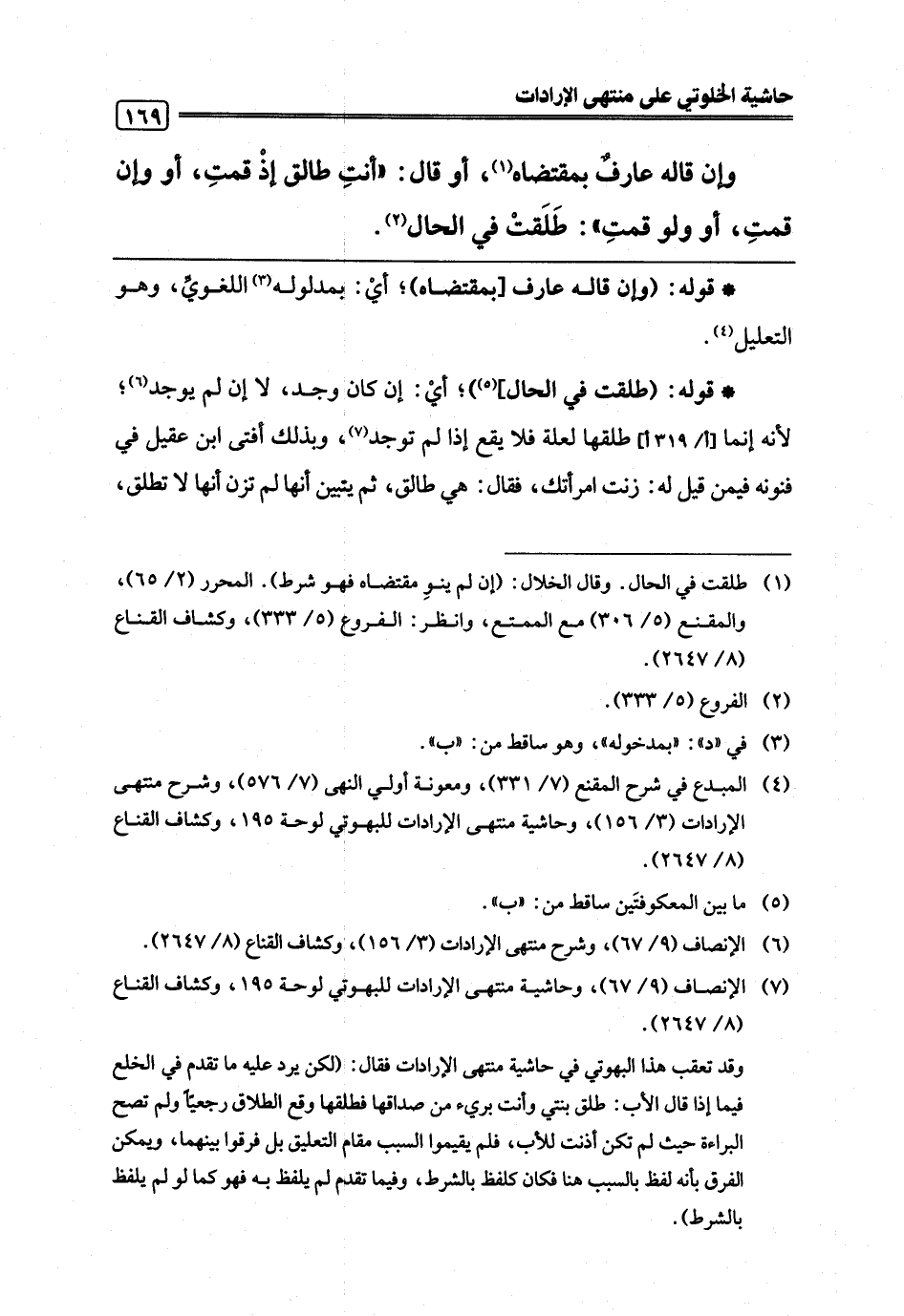 (¬7) الإنصاف (9/ 67)، وحاشية منتهى الإرادات للبهوتي لوحة 195، وكشاف القناع (8/ 2647).