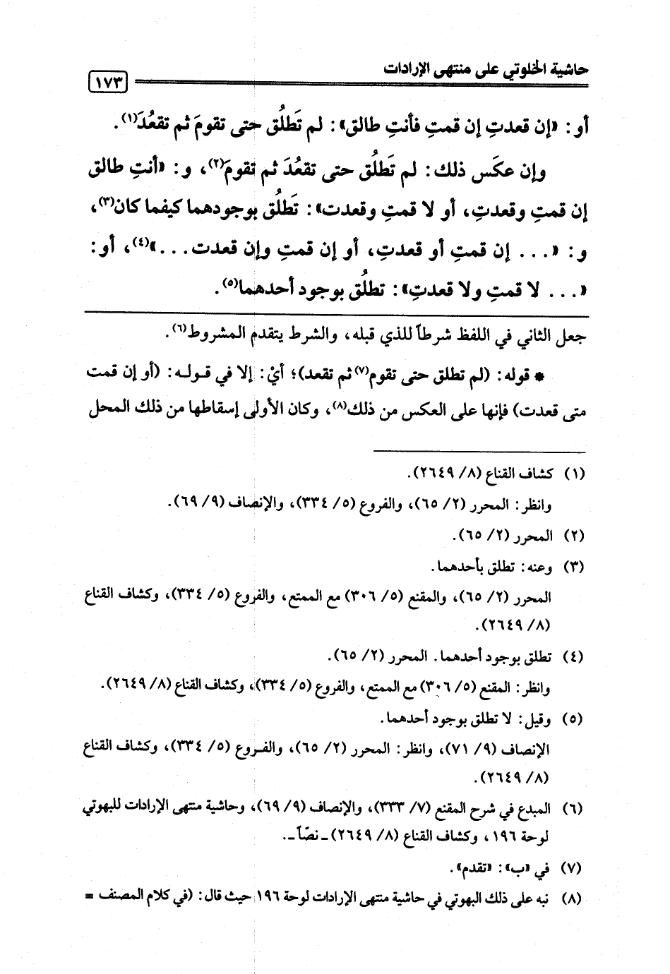 (¬8) نبه على ذلك البهوتي في حاشية منتهى الإرادات لوحة 196 حيث قال: (في كلام المصنف =