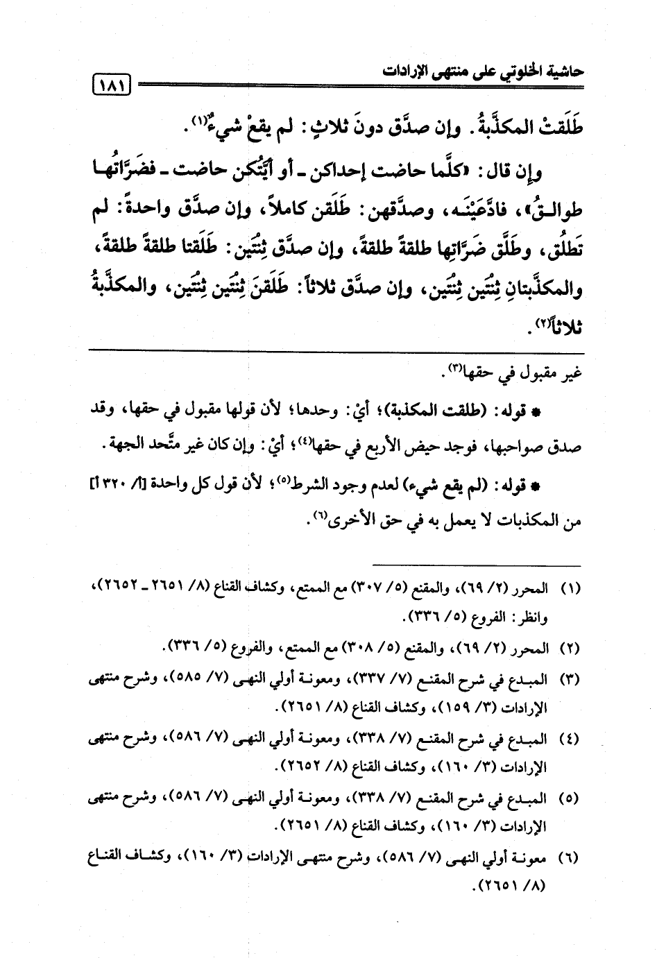 (¬6) معونة أولي النهى (7/ 586)، وشرح منتهى الإرادات (3/ 160)، وكشاف القناع (8/ 2651).