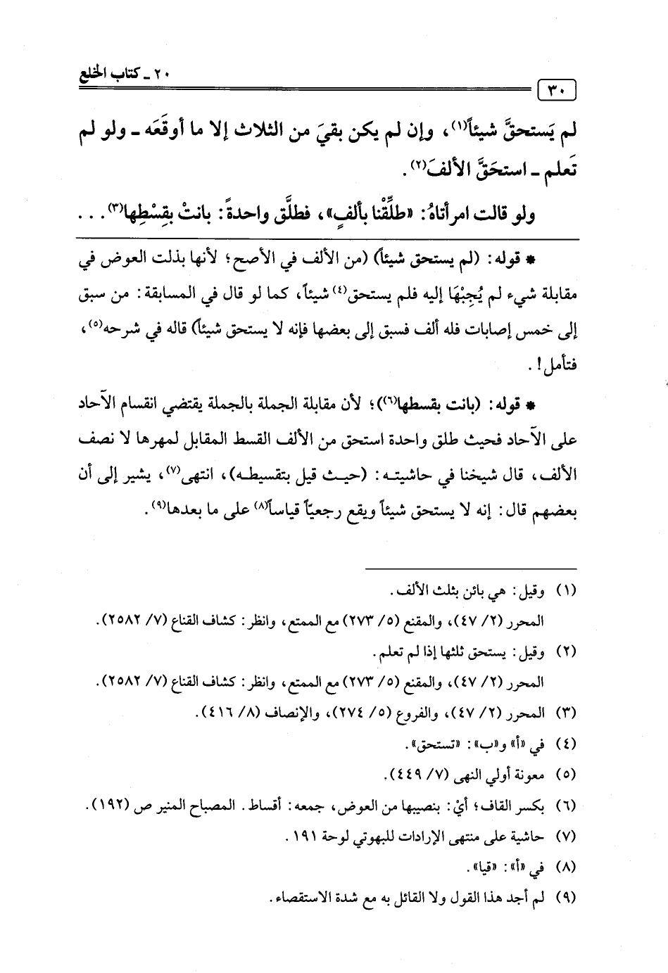 (¬6) بكسر القاف؛ أيْ: بنصيبها من العوض، جمعه: أقساط. المصباح المنير ص (192).