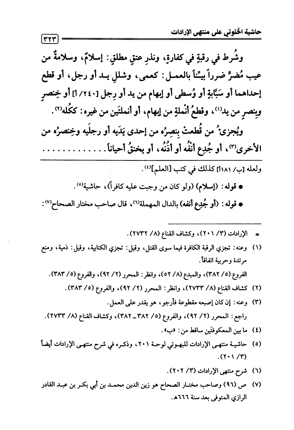 (¬5) حاشية منتهى الإرادات للبهوتي لوحة 201، وذكره فى شرح منتهى الإرادات أيضًا (3/ 201).