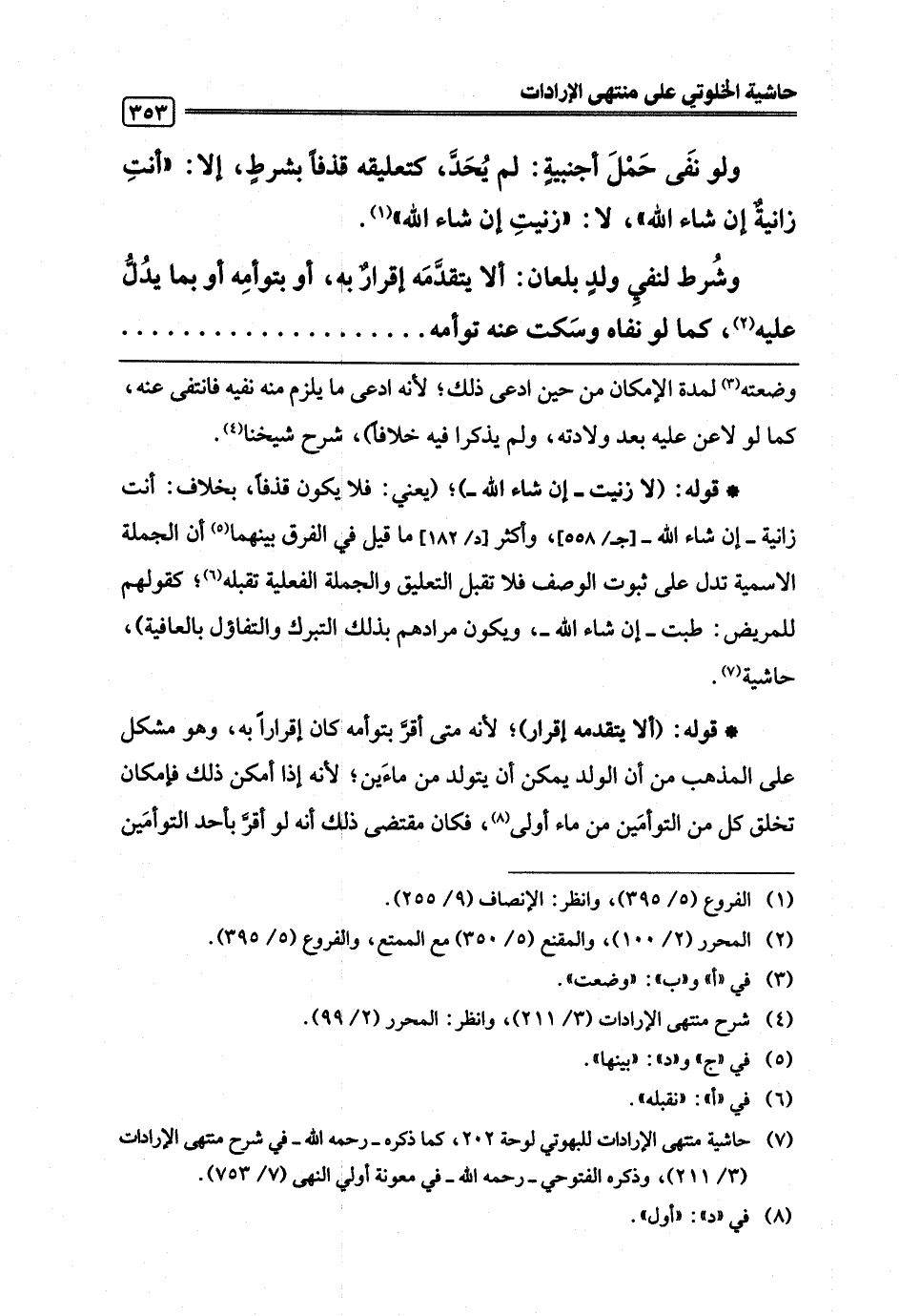 (¬7) حاشية منتهى الإرادات للبهوتي لوحة 202، كما ذكره -رحمه اللَّه- في شرح منتهى الإرادات (3/ 211)، وذكره الفتوحي -رحمه اللَّه- في معونة أولي النهى (7/ 753).
