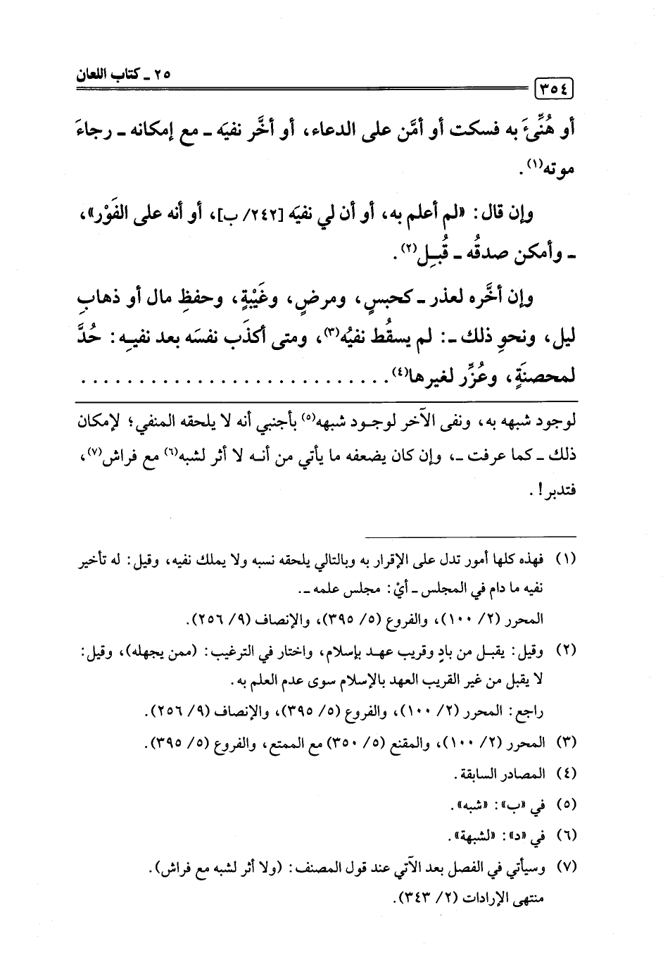(¬1) فهذه كلها أمور تدل على الإقرار به وبالتالي يلحقه نسبه ولا يملك نفيه، وقيل: له تأخير نفيه ما دام في المجلس -أيْ: مجلس علمه-.